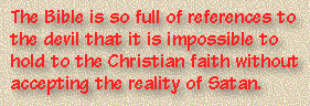 Bible is so full of references to the devil that it is impossible to hold to the Christian faith without accepting the reality of Satan. His existence is taught in seven Old Testament books: Genesis, 1 Chronicles, Job, Psalms, Isaiah, Ezekiel, and Zechariah. And it is affirmed by every New Testament writer. Jesus clearly believed in the personal existence of the devil (Matt. 4:1-11; 13:39; Lk. 10:18; 11:18). In fact, in 25 of the 29 passages that refer to Satan in the gospels, Christ is speaking. If such a basic biblical teaching as this were dismissed as outdated superstition, we would have grounds for questioning the Bible's authority in everything it says.