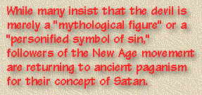 figure" or a "personified symbol of sin," followers of the New Age movement are returning to ancient paganism for their concept of Satan. One of the influential groups in this movement, the Findhorn Garden Community, provides a striking example of the radical changes that are occurring in the thinking of a large number of well-educated people. They report supernatural experiences, write about the reappearance of old gods, and scorn "modern" ideas about reality.