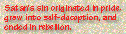 sin originated in pride, grew into self-deception, and ended in rebellion. In Isaiah 14:13,14 we read, "For you have said in your heart: 'I will ascend into heaven, I will exalt my throne above the stars of God; I will also sit on the mount of the congregation . . . ; I will ascend above the heights of the clouds, I will be like the Most High' " (Is. 14:13,14). Satan's pride so deluded him that he claimed equality with God. This led him to spark a rebellion in which he induced a large number of angels to join him (Rev. 12:4).