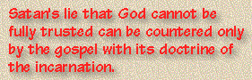 lie that God cannot be fully trusted can be countered only by the gospel with its doctrine of the incarnation. Man cannot answer the devil's lie with an appeal to nature or human experience. These can present mixed messages, sometimes giving the impression that God is good and at other times implying just the opposite. The natural world is merciless, offering horrible spectacles of terror and suffering. Catastrophes such as storms, floods, and earthquakes claim thousands of innocent lives, and scores of terrible diseases spread death and despair. The natural man is easily convinced that any evidences of God's love, goodness, and mercy are only a cruel joke in light of the real world--the world ruled by the law of fang and claw.
