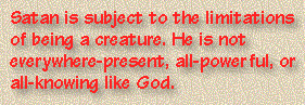 devil, however, is not everywhere-present, all-powerful, or all-knowing, like God. He is subject to the limitations of creaturehood. To carry out his program he must work through subordinates--both demonic and human.
