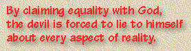 claiming equality with God, the devil is forced to lie to himself about every aspect of reality. His rebellion has locked him into an irrational posture in which he desperately denies the evidence of his own hopelessness and meaninglessness.