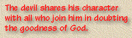 devil shares his character with all who join him in doubting the goodness of God. People who resist the truth and thus become "the children of the devil" become so warped and twisted in mind that even the best actions of God's people are often perceived as being rooted in evil.
