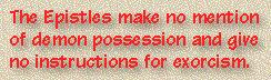 (16:16-18) and cast out indwelling demons at Ephesus (19:11,12). None of these cases involved a demon-possessed believer. Moreover, the Epistles make no mention of demon possession and give no instructions for exorcism. It appears that the men whom God chose to write the Epistles didn't view demon possession as a serious problem in the church.