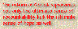 Just keep in mind that if this discussion seems unrelated to your real needs and problems, you're missing something. Nothing is more practical than the return of Christ. When seen properly, nothing provides more hope. Nothing provides more accountability. Nothing puts the pains and pleasures of life in better perspective than the promise of our Lord's return.