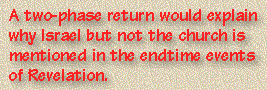 Still others, however, believe that our Lord will return in two phases--once for the salvation of His church and once for the rescue of the nation of Israel. This view includes those who hold to either a pretribulational or a midtribulational approach to the Lord's return.