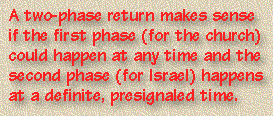 The main evidence for a two-part return of Christ revolves around (1) God's distinct plans for Israel and the church and (2) prophecies that describe the time of Christ's return as being both knowable and unknowable. The reasoning might seem to be a little involved at points, but the main point to keep in mind is that Scripture teaches us to be always ready for the Lord's return. The following pages will explain why that seems to signal a two-part return of Christ--one for the church and one for Israel.