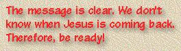 Let's look at it another way. Suppose you knew exactly when Jesus would come back. You would probably have a "To Do" list that would fill pages: