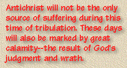 Antichrist will not be the only source of suffering during this time of tribulation. In addition, these days will be marked by great calamity that will come as a result of God's judgment and wrath (Joel 1:15, Rev. 11:18; 16:9). Amid this devastation will be the death of one quarter of the world's population (Rev. 6:8), massive earthquakes (Is. 2:19), catastrophic fires (Is. 24:1,3,6), and sudden destruction (1 Thess. 5:3).
