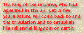 This, then, is the second coming of Jesus Christ. The King of the universe, who had appeared in the air just a few years before, will have come back to end the tribulation and to establish His millennial kingdom on earth.